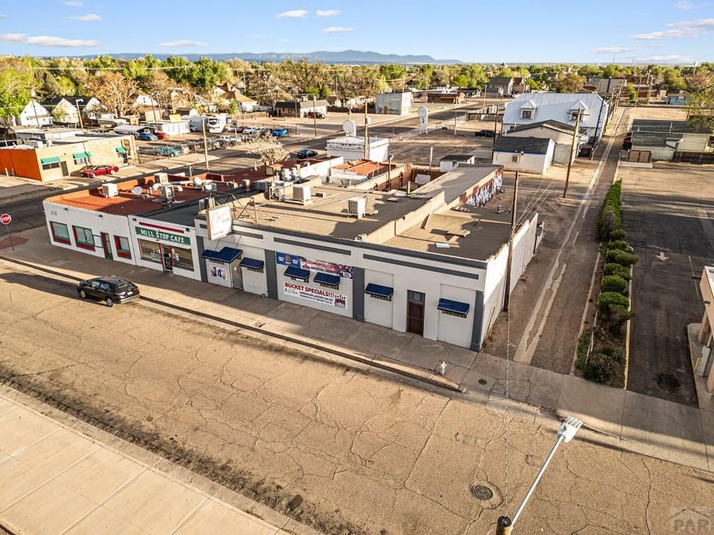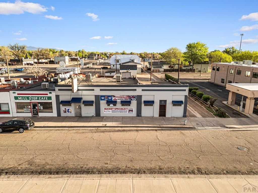 Commercial opportunity with strong street presence and flexible B-4 zoning allowing a wide range of business uses. This property includes the building and land and is currently operating as a bar, offering a turnkey setup for continued use or a solid foundation for redevelopment. The interior features a long bar with ample seating, multiple gathering areas, and open floor space that can be adapted to fit different business concepts. Existing layout supports entertainment, dining, or lounge-style operations with room to reconfigure as needed. Outdoor space adds value with a private courtyard area that creates a unique setting for additional seating or events. Rear access provides off-street parking, improving convenience for customers and staff. The flat roof structure and block construction offer durability, while the location provides visibility and accessibility within an established area of Pueblo. Property presents a rare chance to secure a commercial building with both indoor and outdoor usability.